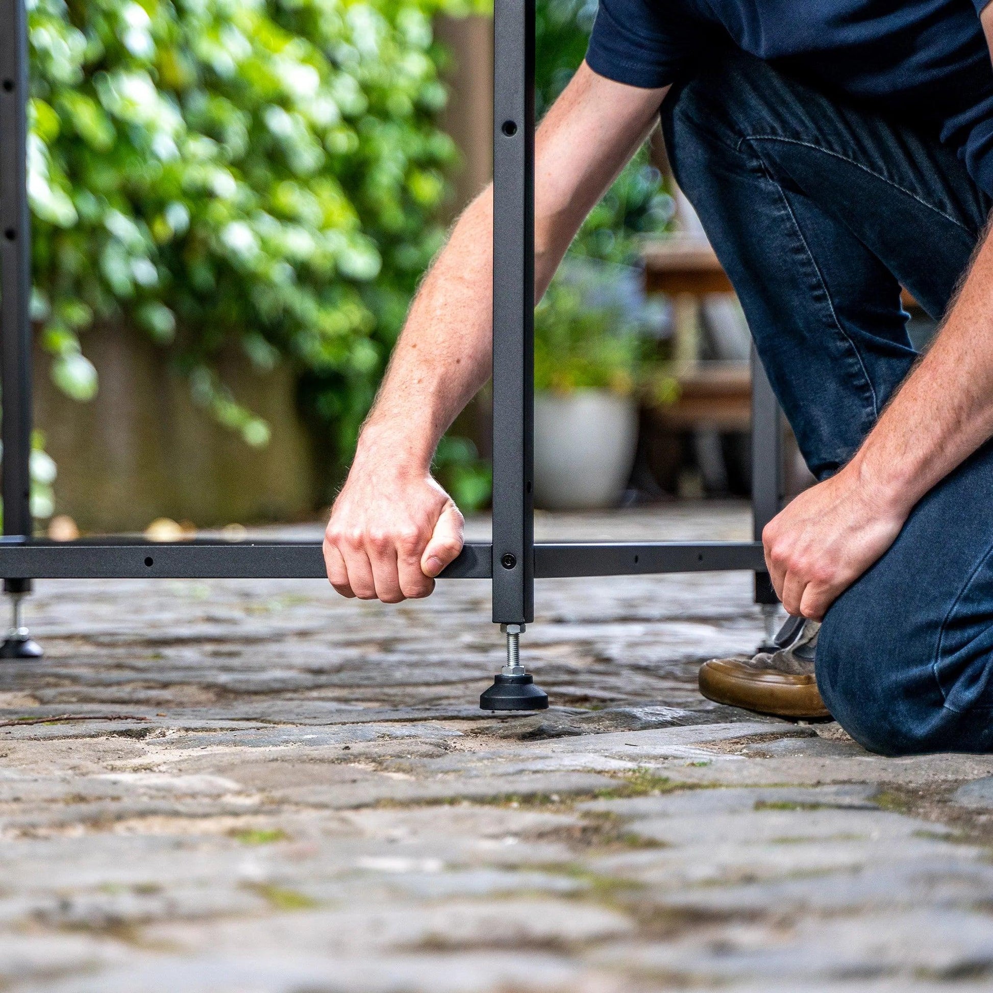Bring your outdoor kitchen dreams to life. Step 1: Install the Foot Pack for Ooni Modular Tables. Once you find the perfect place to set up, unscrew the casters that came with your Ooni table and replace them with these rubber-based feet. Step 2: Start making epic pizza.