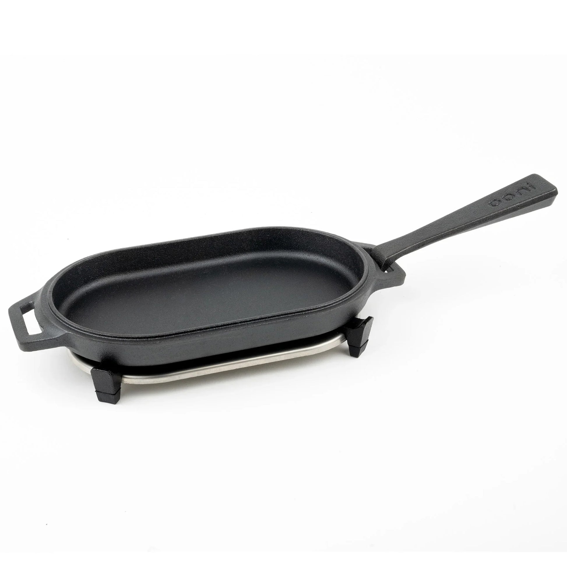 Perfect for cooking meat, seafood, vegetables and much more in your Ooni pizza oven. The unique handle design is removable and comfortable to use, making it easy to get sizzling hot food straight from your oven to the table using the stainless steel trivet stand.